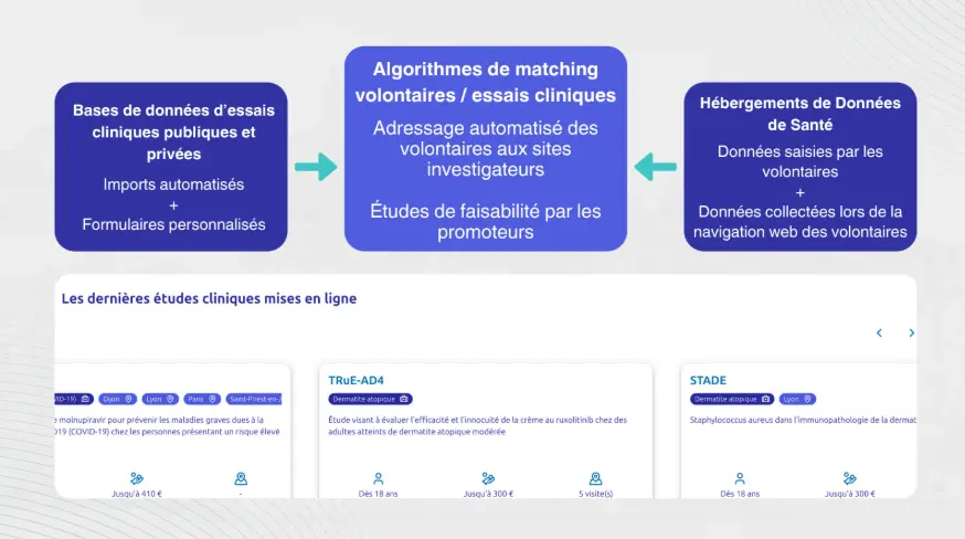 Concrètement, la plateforme identifie automatiquement les études les plus pertinentes pour chaque profil de volontaire : selon son état de santé, sa localisation, ses préférences et ses disponibilités.