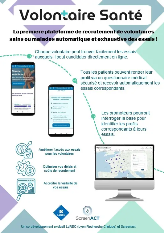 Une innovation stratégique co-développée par LyREC et ScreenACT, pensée pour accélérer le recrutement, diminuer les coûts, simplifier les parcours et renforcer la visibilité et l’attractivité de la recherche française dans un contexte où 86 % des études peinent encore à atteindre leurs objectifs de recrutement dans les délais prévus.